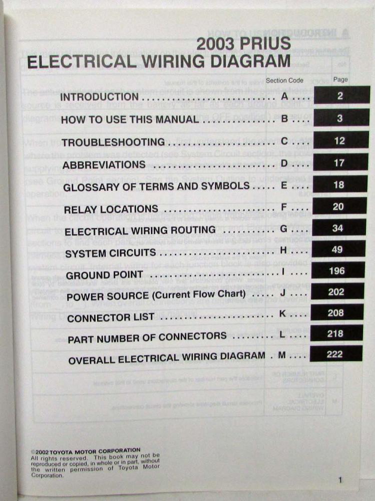 2003 Toyota Prius Electrical Wiring Diagram Manual